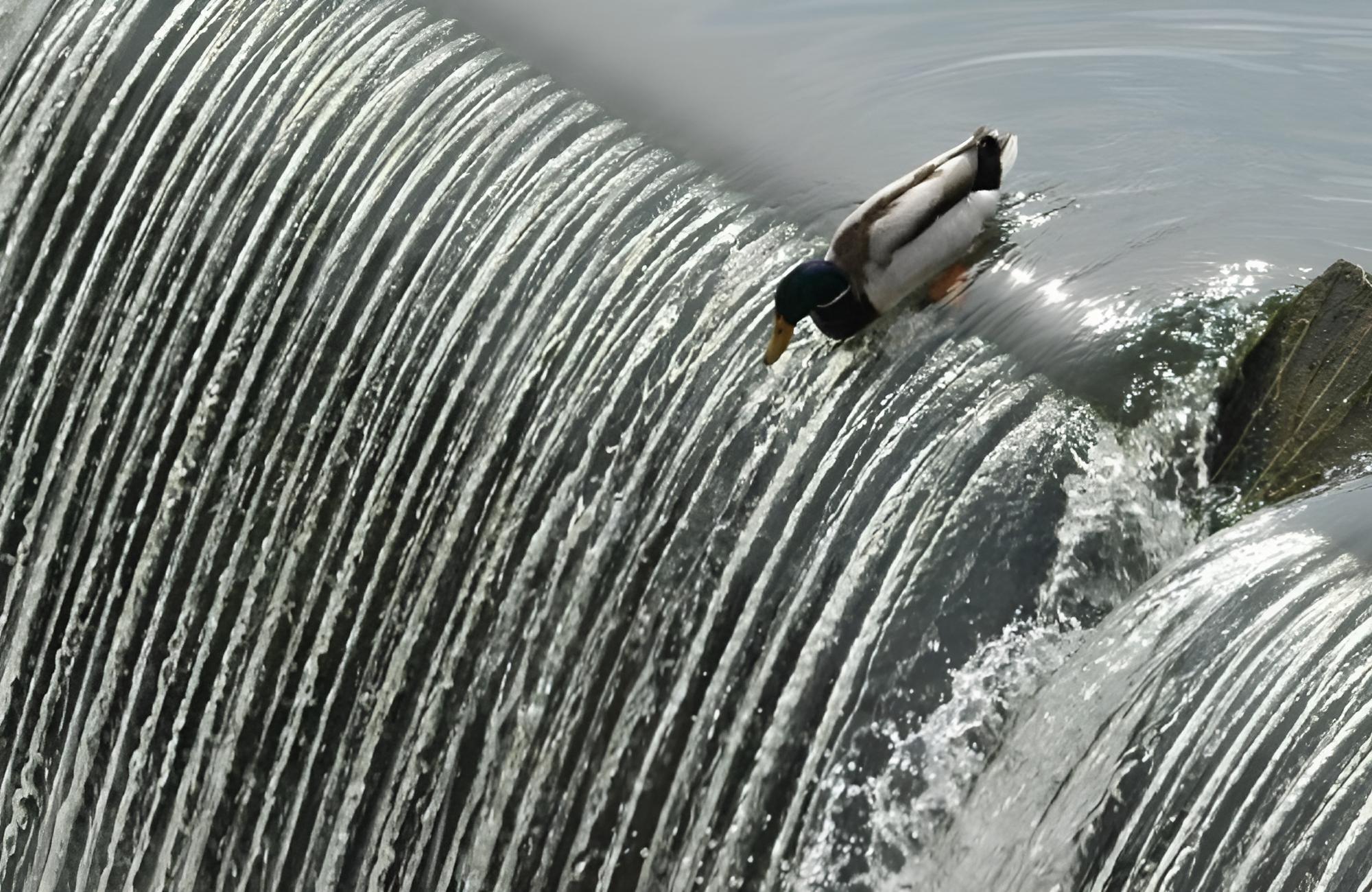 Captioned “goodbyebirb,” this 2016 photograph shows a mallard duck on the precipice of sailing off a rather steep waterfall. Don’t worry, as ducks are not flightless birds. He’s not in actual danger, he just looks very reluctant to stop swimming, and you can see his little orange feet paddling furiously to keep afloat.
