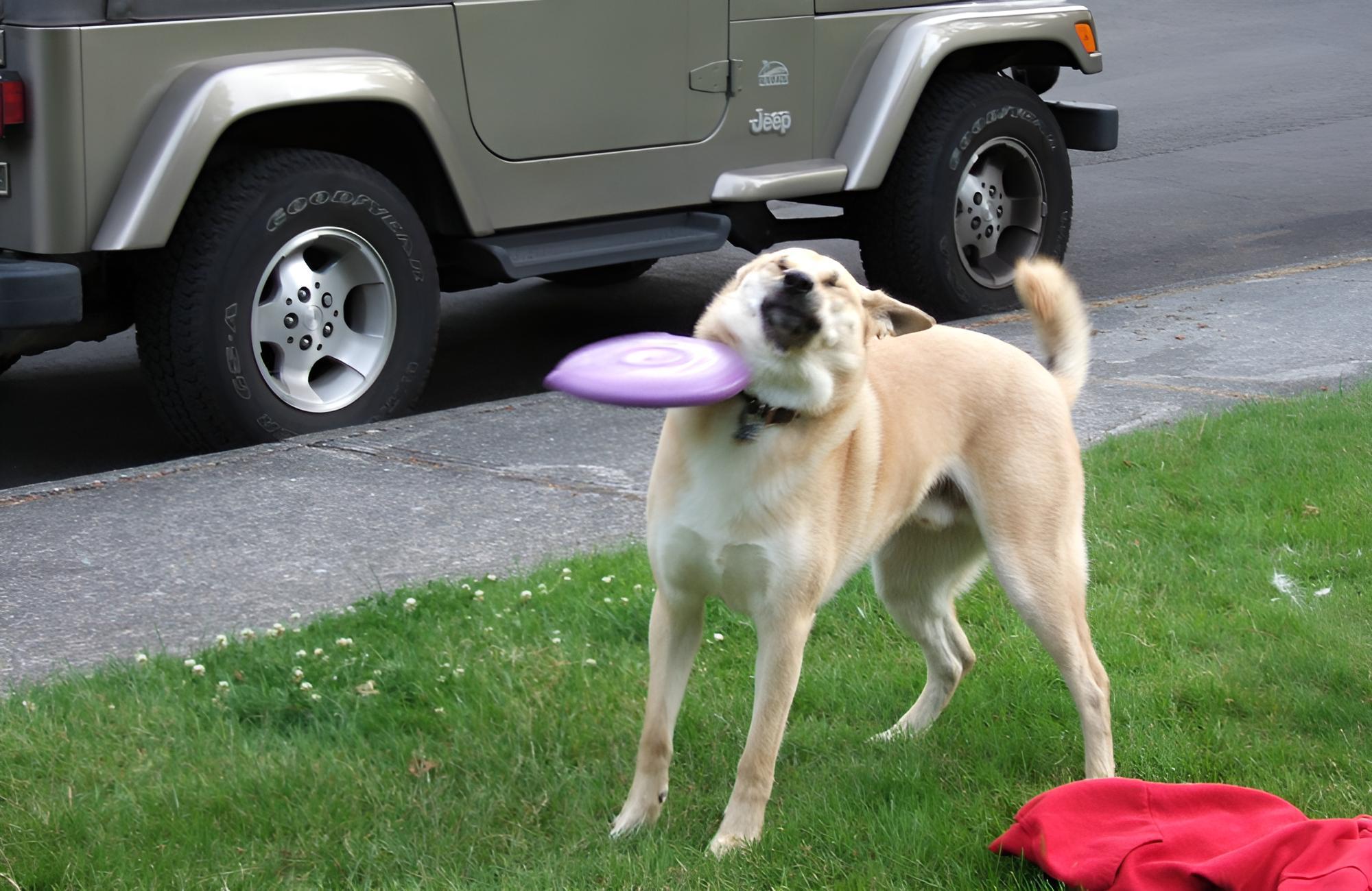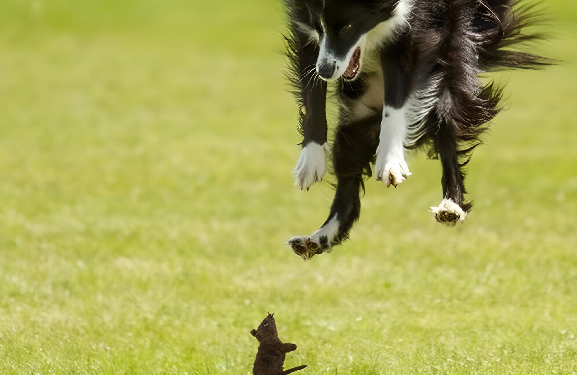 Ah, dogs. They can be so brave and ferocious when barking at the mailman or Amazon delivery worker, but then the tiniest little noise or movement will send them whimpering. This scaredy-dog stumbled upon a toy mouse (one that he’d probably left in the yard and forgotten about), and that discovery sent him jumping a few feet into the air.