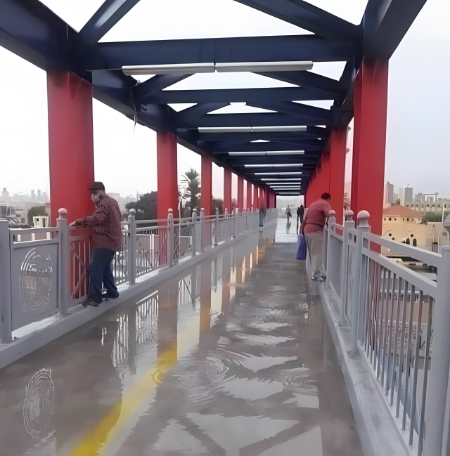 One person certainly started this trend and then all of the others followed suit, thinking that was the best and only way to successfully cross this puddle bridge.