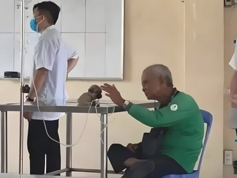 For some people, animals give them a sense of calm – and it looks as though that’s exactly what’s happening here. This man may be under the weather, but this puppy is working wonders.