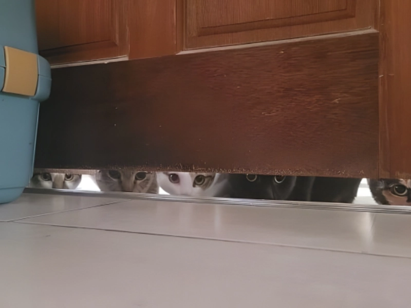 And while dog moms deal with the situation in this funny animal photo on a regular basis, it seems as though some cats are peeping toms, too. This owner can’t even go to the bathroom in peace.