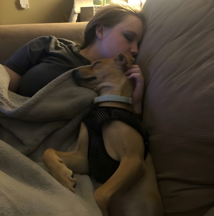 Is it just us or does it look like this dog has a smile on its face? We’re not surprised, considering it’s been given the love and attention it truly deserves. And it’s been allowed to nap on the couch!