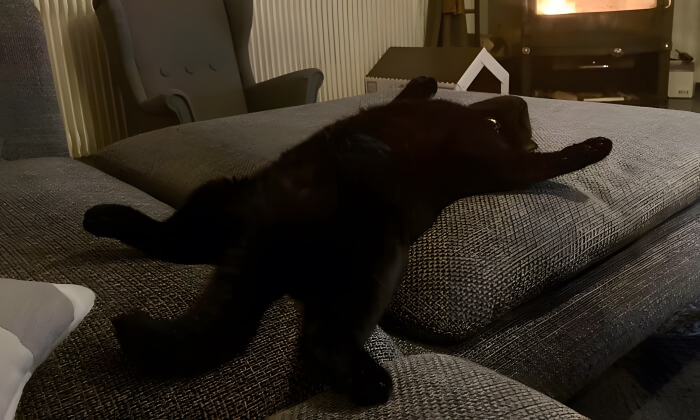 Anyone who has a pet will know that these animals truly become family members. That’s why it’s such a worry when they are injured or become ill – and the owner of this cat understands that better than most. When their cat Kaia got injured in a car accident, she suffered from serious stomach trouble. And the only way that Kaia could get to sleep was by sleeping on her back in a starfish position!