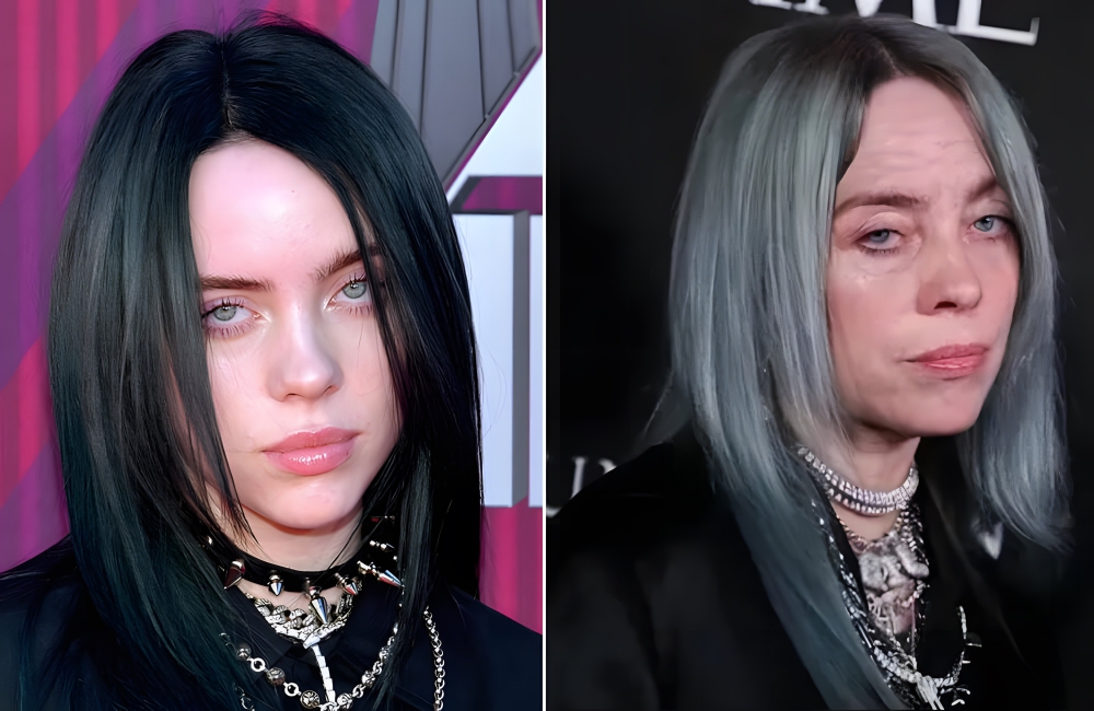 Back in 2019, every celebrity around was doing the FaceApp challenge, which artificially aged them decades into the future. Billie Eilish jumped on the trend, showing us what she would look like in her sixties. Of course, she kept her green hair in the picture (she wouldn’t ditch that until her 2021 blond bombshell look for the cover of Vogue).