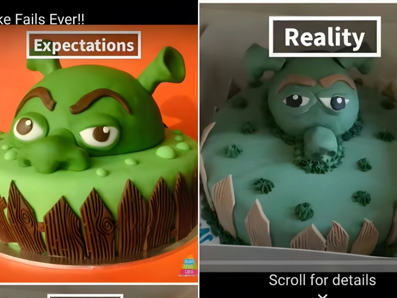 Yes, the green was perfect, but the angry ogre frown had turned into a more subdued stare. It serves as a humorous reminder that occasionally, a cake you order may have different ideas about how to bring a character to life, leading to a delightful surprise that is more “aww” than “roar.”