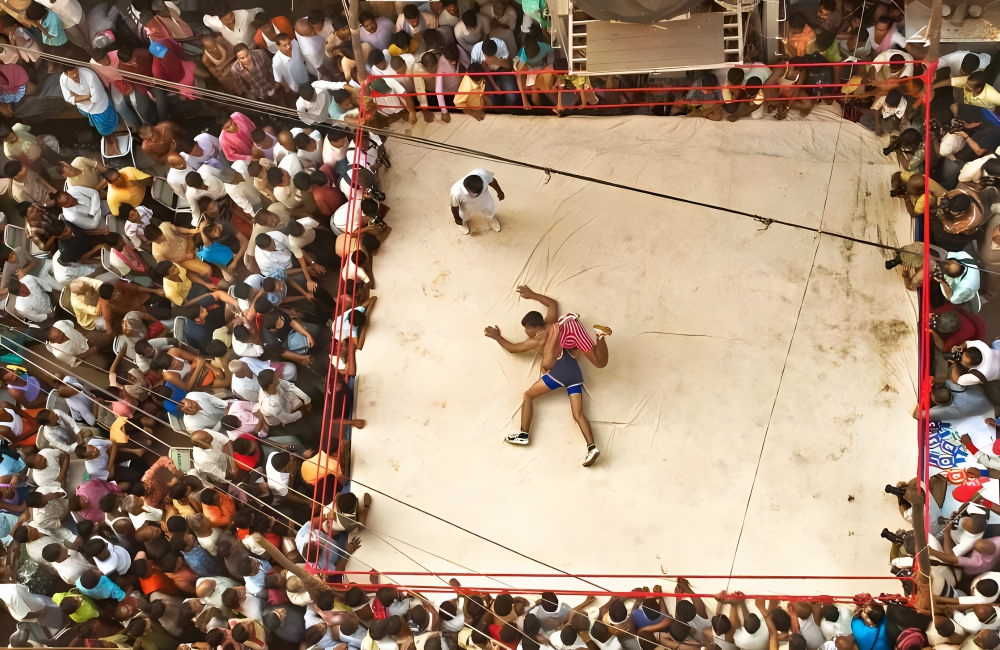 This timeless image was captured from an old high-rise structure attic using a drone and is undoubtedly a simple yet fascinating show of culture intermingled with sports.