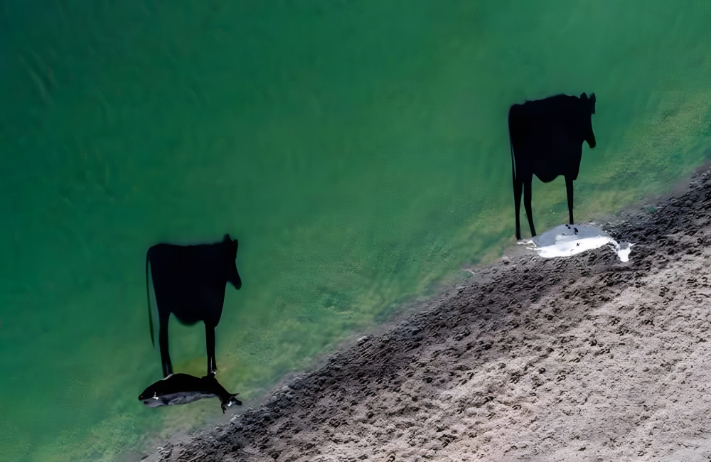 This iconic picture was captured by chance when Cape Town-based photographer and videographer Luke Bell spotted two cows peacefully gulping water from a stream. Bell spotted the cows on a cold September morning in the early dawn hours while strolling along a farm.