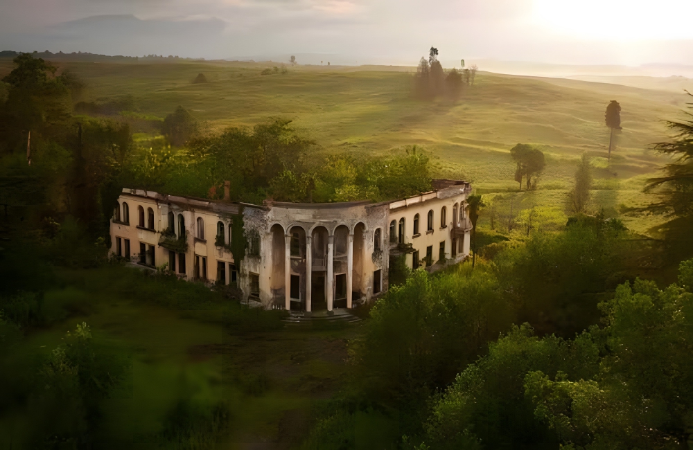 It offers a glimpse of an abandoned college in the beautiful countryside in the Republic of Abkhazia, where ethnic cleansing expelled people from their home in the 1990s. The abandoned building now stands as an epitome of ruin, plunder, and injustice, seemingly shrouded in eternal gloom.