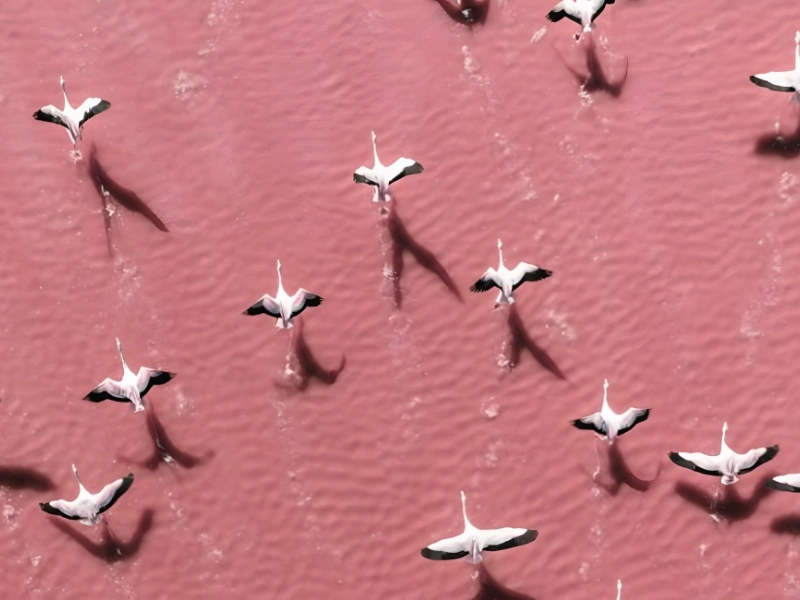 Flying over Laguna Colorada in Bolivia, Flamingos ©Aerial Abstract Painting/Getty Images