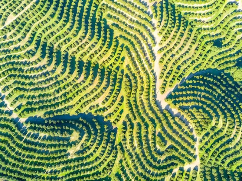 Orange groves resemble other fields and orchards in that their patterns are hidden from view when viewed from the ground. However, from an aerial perspective, as this picture by @Sopotnicki shows, you can see that each of these groves has a unique pattern and flow that is exquisite in its own right.