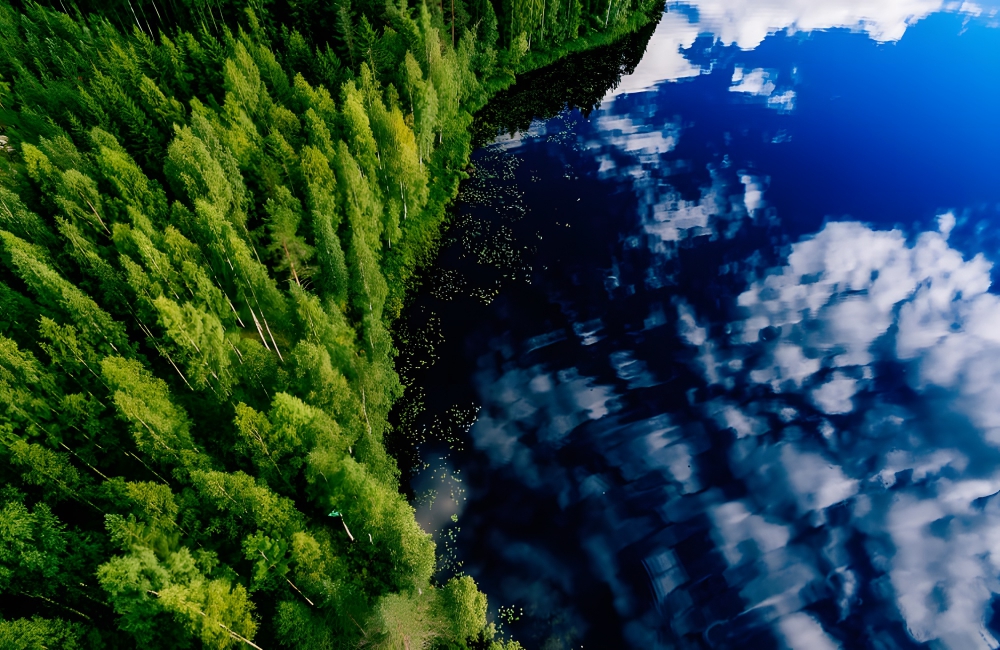 Ekaterina Kondratova took this photo of a lovely natural scene in Finland, where there is a dense, green forest on one side and a crystal-clear blue lake on the other. The lake’s waters are so blue that the clouds reflected on them almost make the lake itself look like a small slice of sky.
