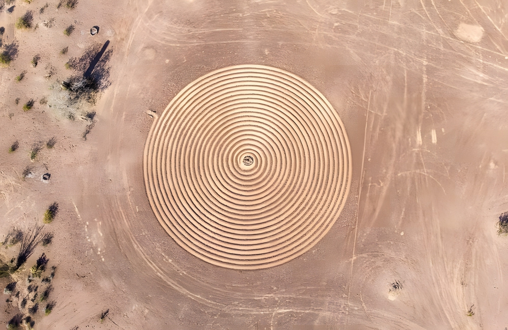 John Dvorak is the photographer who took this alien-like snapshot that will certainly pique the interest of Signs fans. This “labyrinth in the desert,” as Dvorak called it, is a circling, spiraling pattern created in the sand. This photograph was taken in the Arizona Desert, possibly with a drone like the Yuneec Mantis G.
