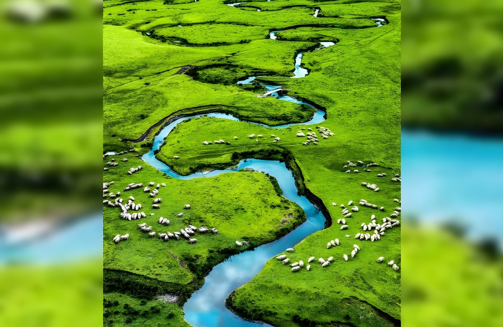 This photograph was taken by social media user @HelloRF Zcool. It is an aerial shot of the Xinjiang River, and the colors are striking. The drone used is unclear, but it might have been the Yuneec Typhoon H Plus, a hexacopter that can shoot a 360-degree, 20MP image. The H Plus has triple-axis, sensor-driven image-stabilizing technology.