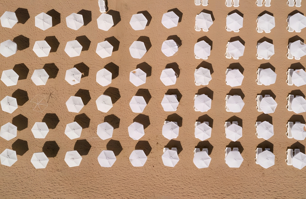 People don’t really think of Eastern Europe as very “beachy,” but it actually is. The golden sands of Varna, Bulgaria are an example of why Eastern Europe has become a very popular vacation destination for Western Europeans on holiday. Photographer Michael Dechev took an aerial view of a crowd of remarkably-evenly-spaced white umbrellas on a Varna beach.
