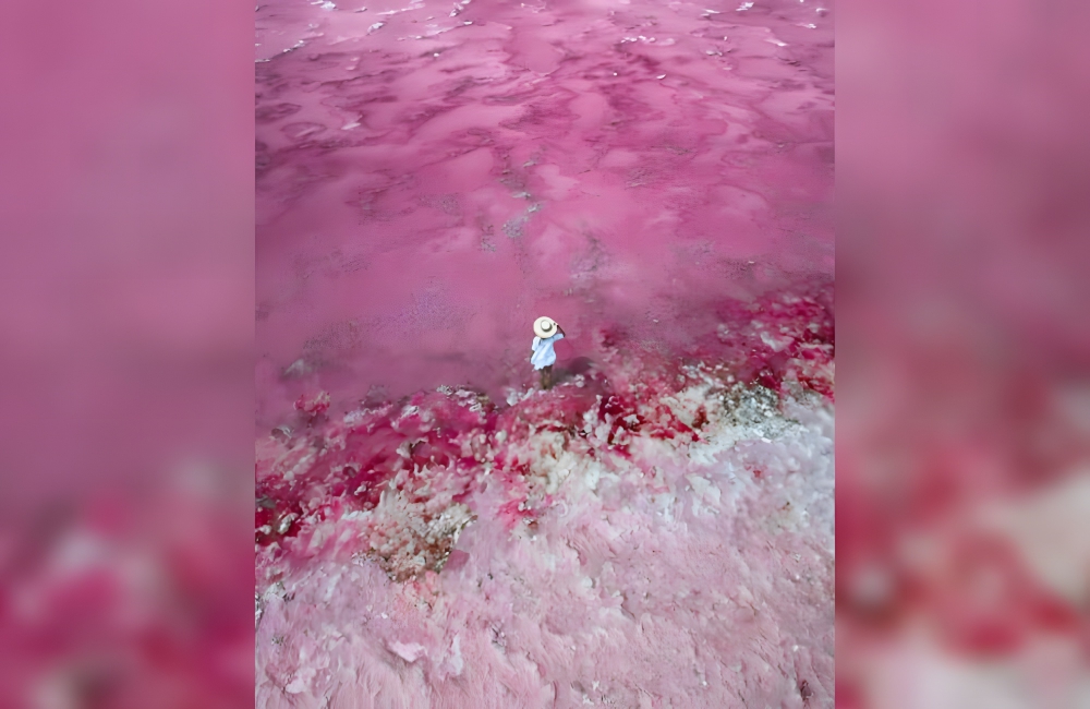 Pink Lake is located in the Goldfields-Esperance part of Western Australia. It is noted for its visibly bubblegum-pink appearance. However, it hasn’t been pink since 2017. The pinkness is caused by salt concentrations, and, as those have been low in recent years, the pink color is now gone. If conditions change, this 245-acre lake could turn pink again.