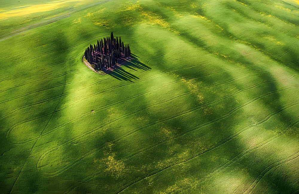 Mauro Pagliai took this incredible photo, which he titled “Green Waves.” The photograph won the silver medal in the SkyPixel contest, beating out thousands of other entrants. “Green Waves” was shot in the beautiful Siena, Italy countryside, which is known for its rolling green hills and glittering, golden sunshine.
