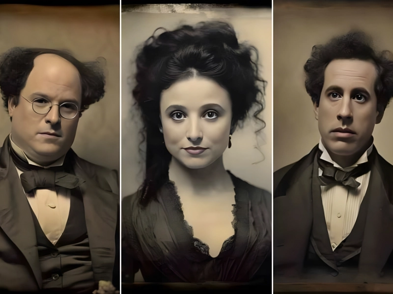 しかし、となりのとなりのサインフェルドが象徴的な 1990 年代ではなく、今世紀初頭に起こっていたらどうだったでしょうか? ジョシュアの奇妙な AI 写真シリーズがそれを示しています。マリオ・ジェームスは「おお、それはクレイジーだ」と思います。ジェリーと彼の友人たちは、工業化、女性参政権、蒸気機関車などについて話し合ったでしょう。