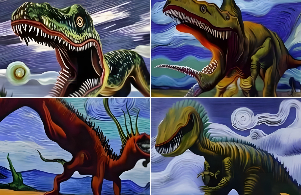You can find this bizarre art on Etsy, courtesy of seller @ArtificialIntelevi. Right now, as of late 2023, the price for this download is $5.74. It’s certainly a unique series, featuring dinosaurs if they were created by none other than legendary artist Vincent Van Gogh.