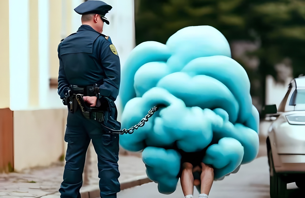 We’ve all smelled a fart that was so noxious, the person who emitted it needed to be put in jail. That concept was taken to a new level, courtesy of Midjourney. Here, we can see a police officer arresting a very unusual suspect.