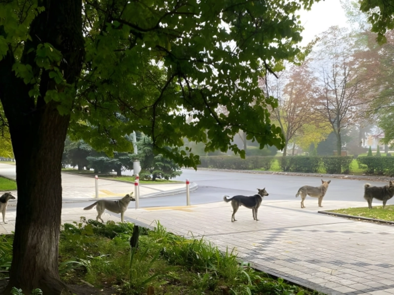 2. These stray dogs from Ukraine landed in perfect line all on their own for some food.