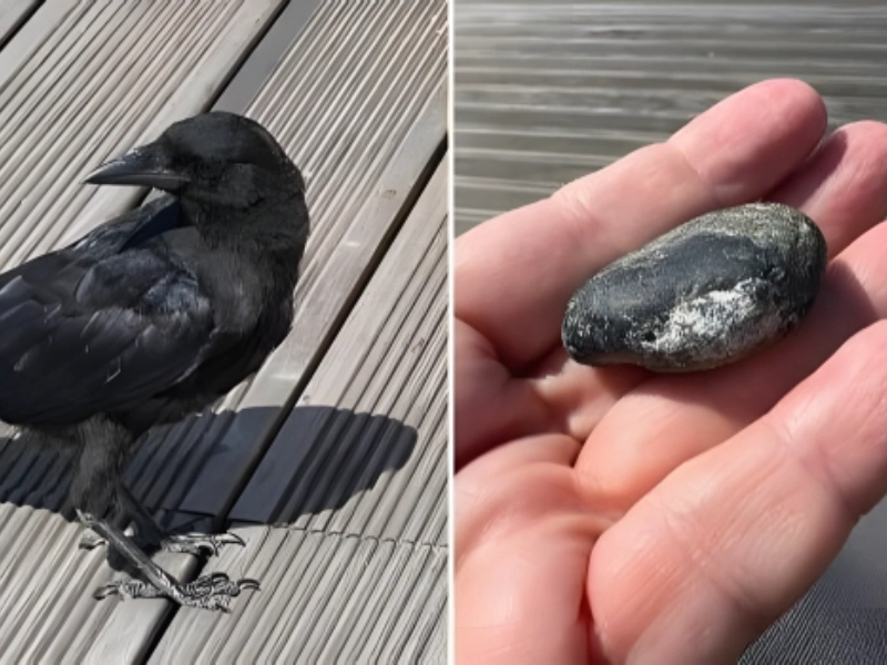 While wild animals lead their own life, we often live ours. But when these two worlds cross and friendships result! When this woman chose to give a neighbouring crow some of her meal, she broke through this barrier. She was not expecting anything in return, hence this friendly crow realised it cannot go back to her new friend empty-handed. She thereby acquired a lovely stone!