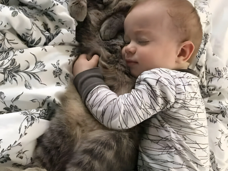 The kid and the cat seem to be quite happy with their sleeping posture, which makes us believe that this adorable animal picture is not one-of- a-kind. Right there, there is a massive animal lover in development.