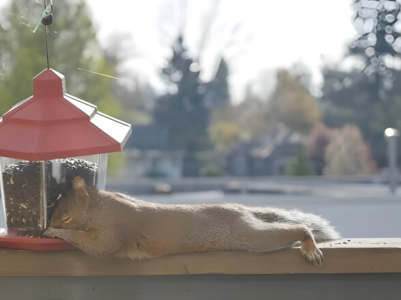 Most people’s daily activities include of trying to prevent their squirrels from consuming the food in their bird feeders. They are indeed meant for the birds! Why not simply let a greedy squirrel have a bite though? It’s difficult to stop them from sneaking a seed (or twenty). This woman clearly chose to let this lovely squirrel go at it when she installed a bird feeder on her deck. It was tired before too long as well.