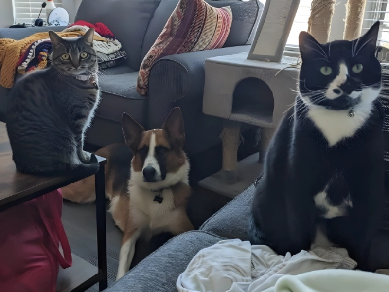 Animals have quite remarkable sensitivity, did you know? The human body’s slightest changes—including temperature, blood pressure, sugar level variations, and even hormone changes—are detectable to them. And on this occasion, the animal brood in this house could detect that their master was in early stages of labour. They so crowded about her and bided their time for the pivotal moment. Right? That’s quite touching.