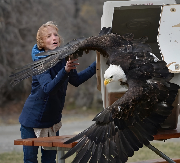 This woman is trying to hold it back, but the bird says, “No, I am the symbol of freedom. Let me spread my wings and soar into the sky like the beautiful bird I deserve to be.” They always look so angry, we wonder what goes through their minds.