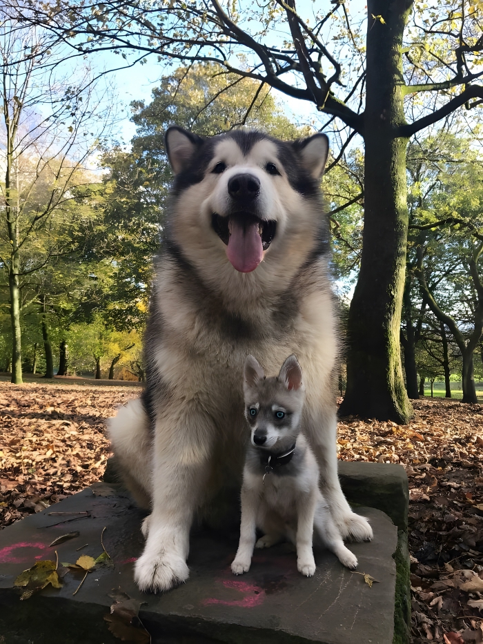The Klee Kai looks like it is one of Phil’s puppies, but they are just that different in size. The Malamute can weigh around 90 pounds, and they were initially bred for hauling heavy freight like a sled dog. These two vary in size, but their cuteness is equal.