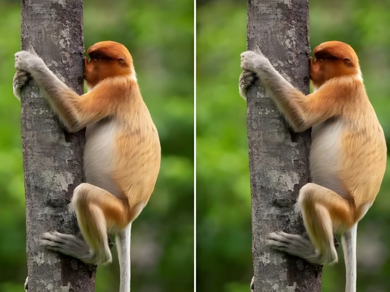 Since trees are an important part of monkeys’ lives, who are we to judge, in the words of Hodan? The proboscis monkey was probably trying to figure out who else had climbed the tree by sniffing it thoroughly or pressing his nose against the rough bark. Who knows, maybe he’s in love?