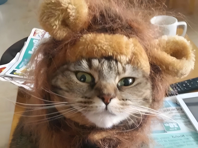 Purchasing a lion’s mane for your feline companion is a great way to provoke them and capture a humorous photo all at once. They are inexpensive and fit your cat’s head snugly without being overly tight. You can get them at Target or on Amazon.