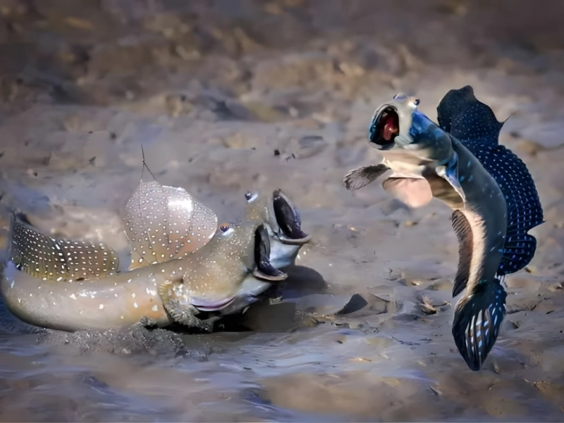 This image, which was taken in Taiwan, shows the bizarre-looking mudskipper, an amphibious fish that consumes tiny crustaceans, worms, beetles, and even crickets. The mudskipper is referred to as the “walking fish,” and it does it pretty theatrically.