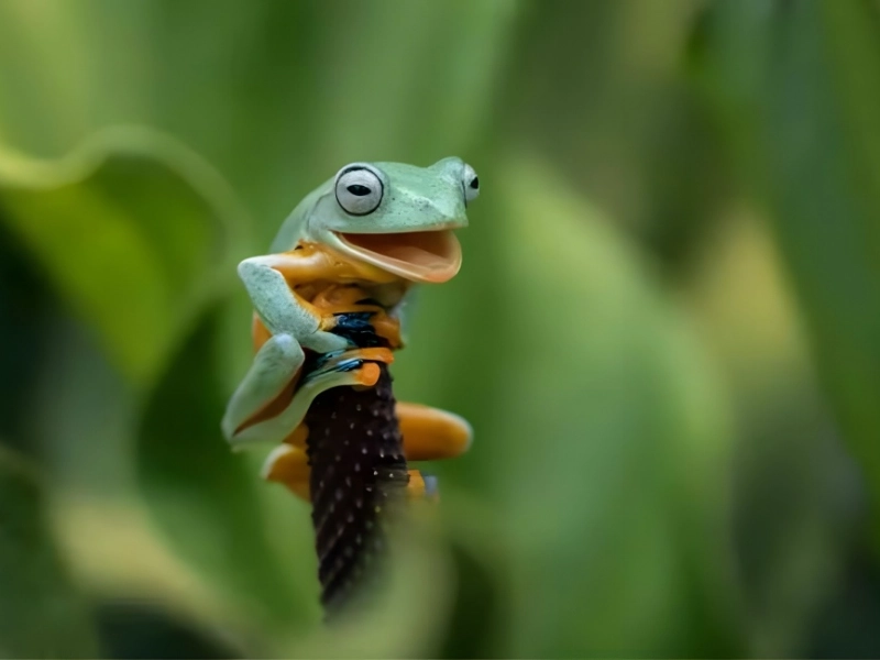 For such a small amphibian, though seemingly insignificant to us, this achievement was comparable to scaling a tower. The frog celebrated his successful ascent by letting out a “laugh” as he reached the top of the bloom.