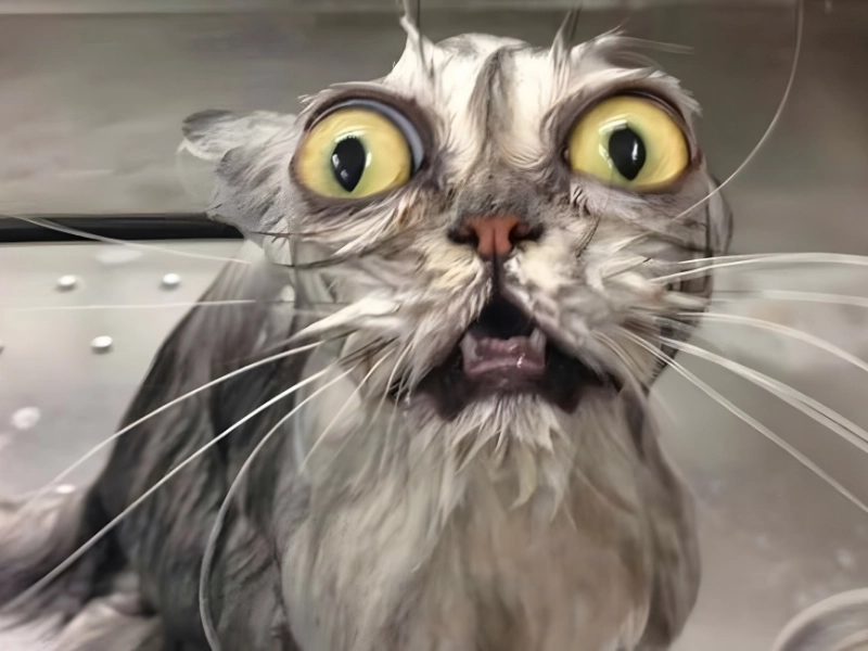 This image serves as just one more illustration of how much cats detest water—there are plenty more on the Internet. Cats detest water because their fur is unpleasant when wet and is difficult to dry. Cats with wet fur are less agile because it sags and is heavy.