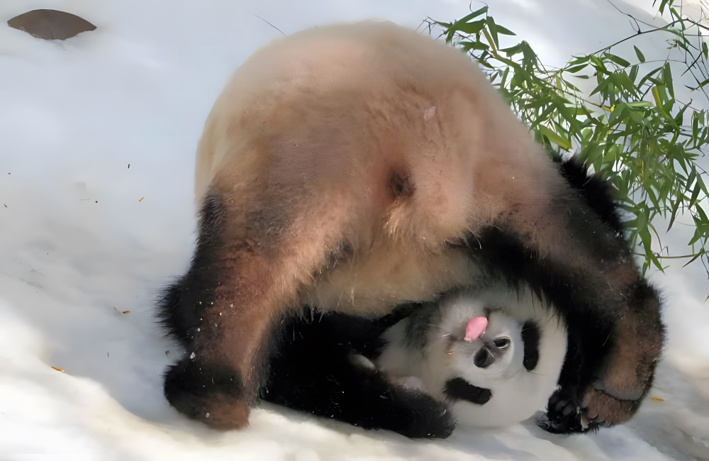 Or you can just look at this adorable picture of a panda playing with snow, failing, and falling on his head! It even has its pink tongue out as if in acknowledgment of rolling the wrong way. The picture was captured at the San Diego Zoo, with this baby panda – named Su Lin – showing the world that it is okay to be silly, especially on snowy days.