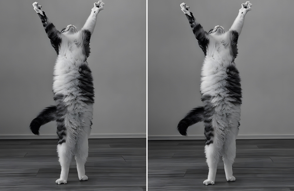 Cats love to imitate humans and animals around them; whether it’s yoga-loving owners or barking fellow pets. They are also remarkably flexible, stretching to whichever position you put them in. It is famously said that all a cat needs to do is pass its head through an opening, and the rest of its body follows suit, no matter the size.