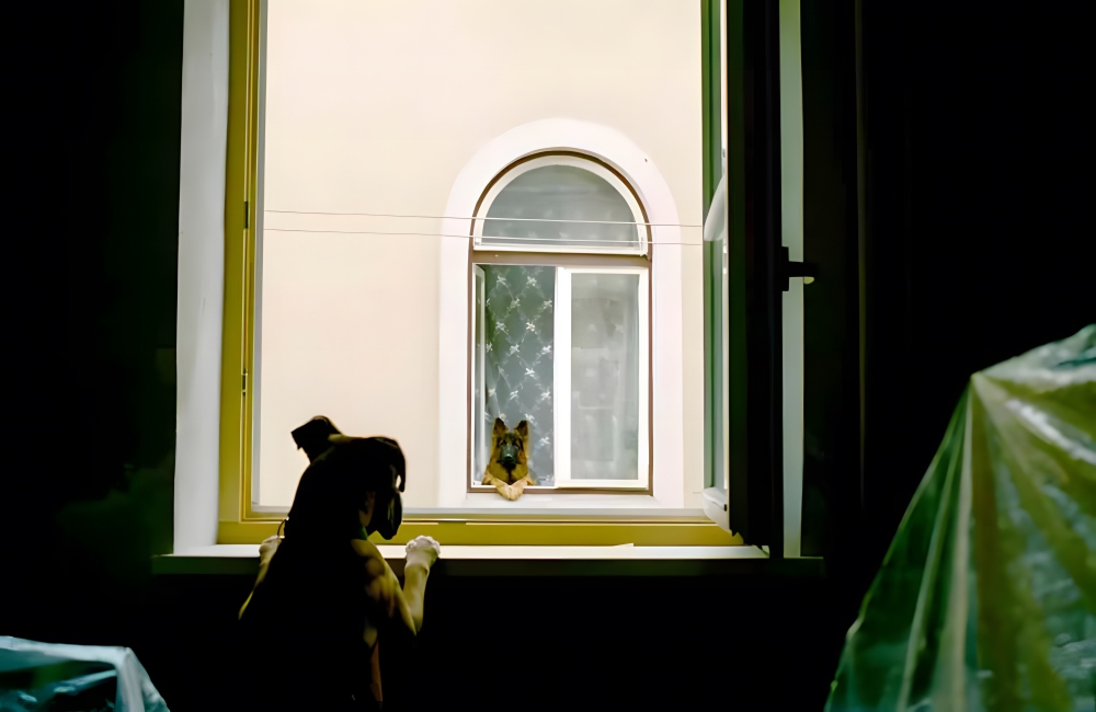 A common sight in everyday life – and even movies and television series – is of women peeking out of the windows of their closely constructed houses to talk to their neighbor women, sharing stories of their day, and finding company in the close proximity of their houses. But did you think only women do that? Apparently, some dogs do that as well!