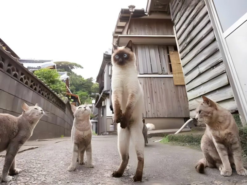 Cats gathered around a single cat. Awards for Kenichi Morinaga/Comedy Pet Photography