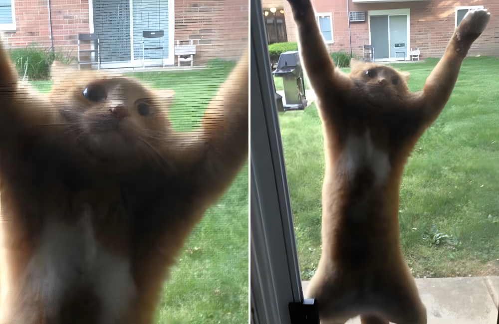 Cats are extraordinarily limber, and they’re sure to get themselves into all sorts of mischief because of it. This cat, for example, chose to try to scale the screen door. But, like many cat-brained plans, it didn’t work out.