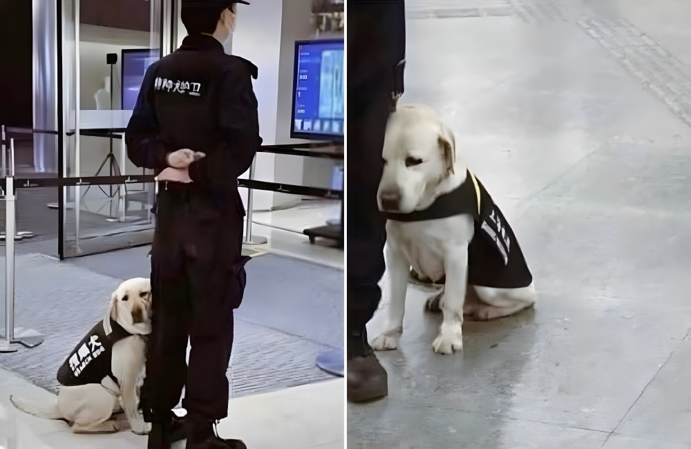We totally get it—some days, we don’t want to work either. This puppy looks as though he would rather be anywhere but the airport, and he’s slouched against his owner, just waiting for the clock to say he can go home.