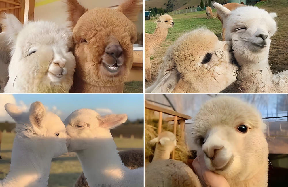 It turns out llamas aren’t just endearing fur balls but are also very lovable despite their size. They love cuddling with each other and expressing their love, whether by smiling adorably, biting each other’s cheeks, or hugging each other. We wish we could keep llamas as pets and spend time with them all day long!