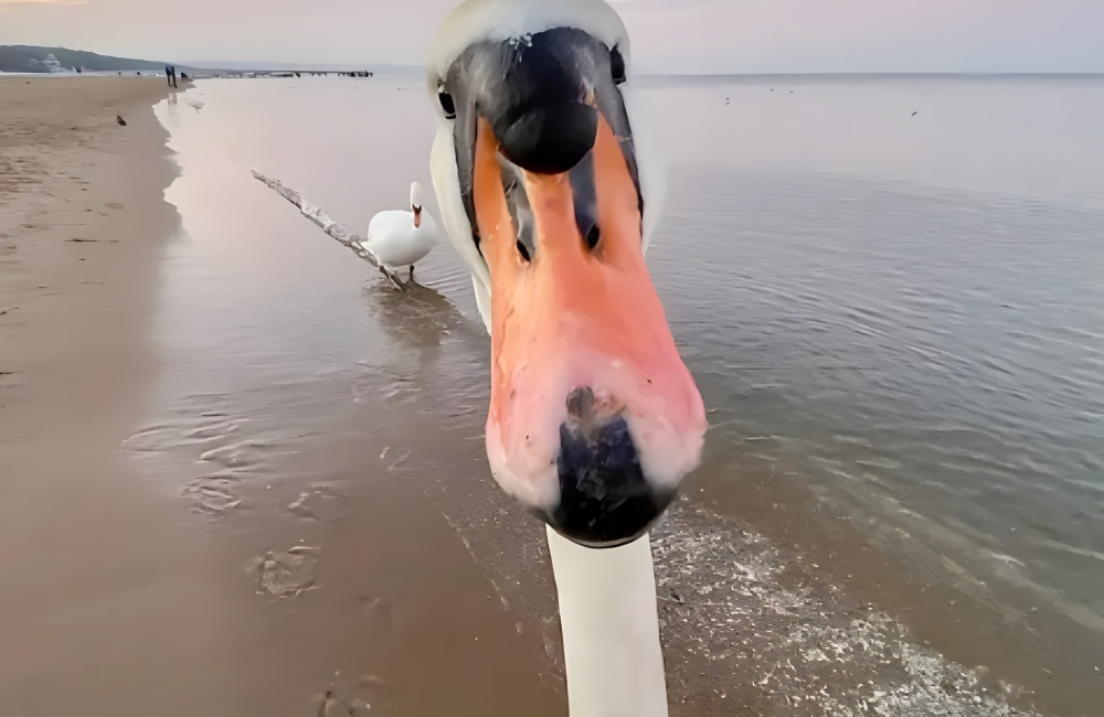 As Jaroslaw Kolacz strolled along the pristine shores of Poland Beach, he was met with a rather confident local resident: a swan with supermodel aspirations! “Work it, darling!” the swan seemed to say as it leaned into the lens, ensuring its best angles were captured.