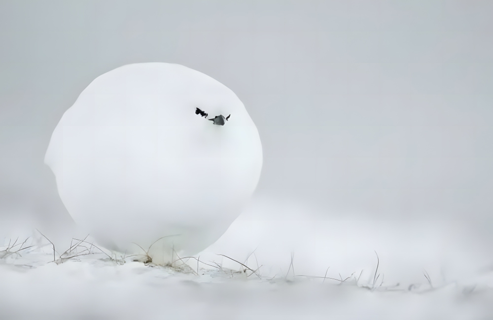Imagine trudging through the frosty landscape, feeling the nip of cold in the air, when suddenly you’re met with what appears to be a rogue snowball! But on closer inspection, this isn’t any regular frozen water — it’s a white grouse! Jacques Poulard, known for his impeccable timing, managed to capture this fluffy surprise just as it stared back, looking like it was auditioning for a role in a new winter fairytale.