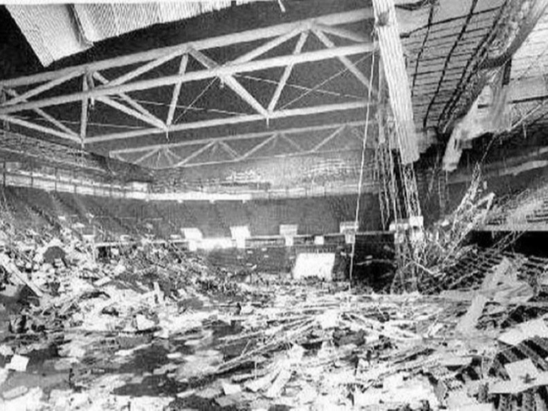 1979 at Kemper Arena in Kansas City, Missouri The designers of the Kemper Arena roof used a few sizable coverings to block out wind and rain, but they miscalculated the bolt strength. 1979 saw the roof give way. Luckily, no one was harmed. Post navigation Hilarious Fur Friends’ Photo Bombs Denim Jackets And Other Fashion Trends Of This Year 1 2 3 4 5 6 7 8 9 10 11 12 13 14 15