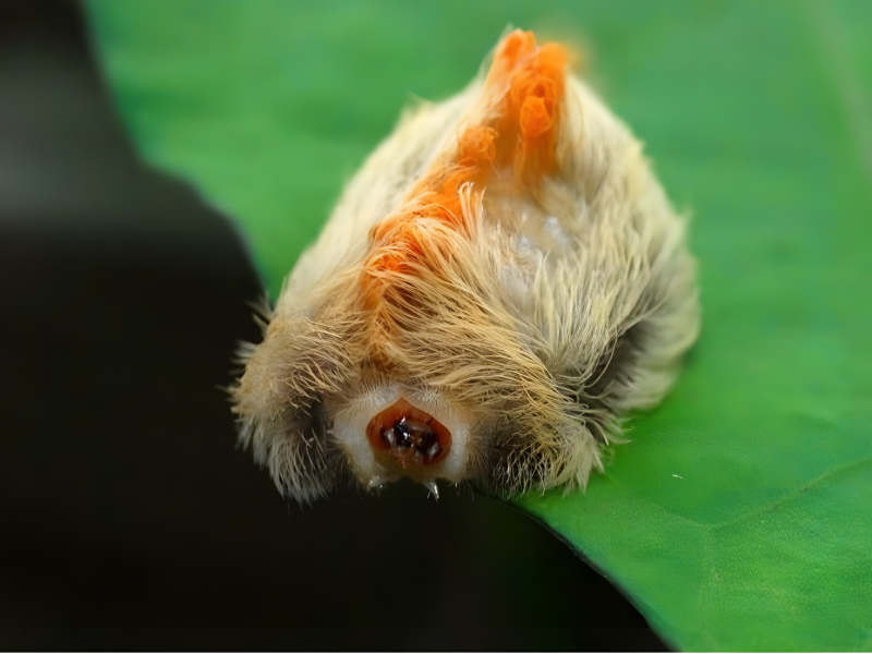 Au stade « adolescent », cela semble incroyablement bizarre. Cela ressemble à un morceau de laine typique. Il est important de noter que les poils de la chenille sont extrêmement toxiques. Cela fera très mal si on le touche. Il est possible de se retrouver à l’hôpital.