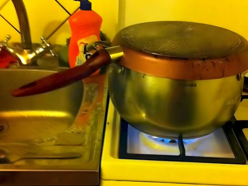 Everything about this kitchen arrangement seems really risky. Still, we have to respect the resolve not to shell out $16 for a brand-new, oversized pot lid. As an alternative, someone covered it with what appeared to be an expensive skillet. We’re going to advise against doing this even if it seems like a poor idea, even though it probably works.