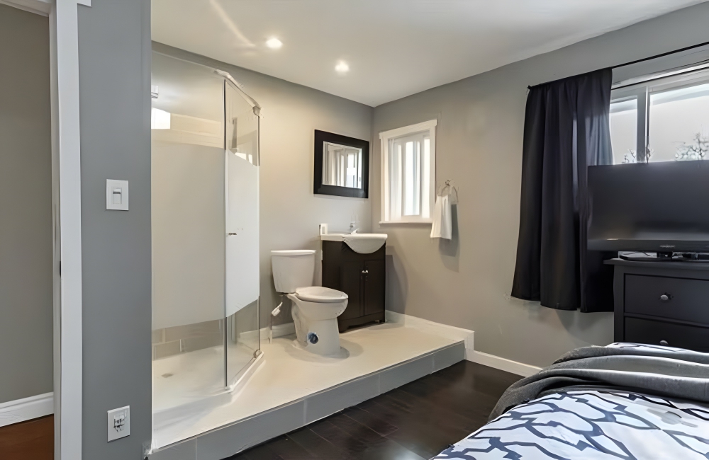 However popular the design trend might have been, we doubt it was intended to go this far. The open-concept bathroom has a toilet right next to the bed, with absolutely no wall or attempt at a divider in sight. It’s a shame because, other than that really odd choice, the bedroom is pretty stylish.