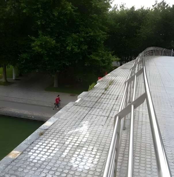 If they had just put the railing on the actual edge of the bridge, rather than halfway through it, both the cyclists and the pedestrians would have been kept safe.
