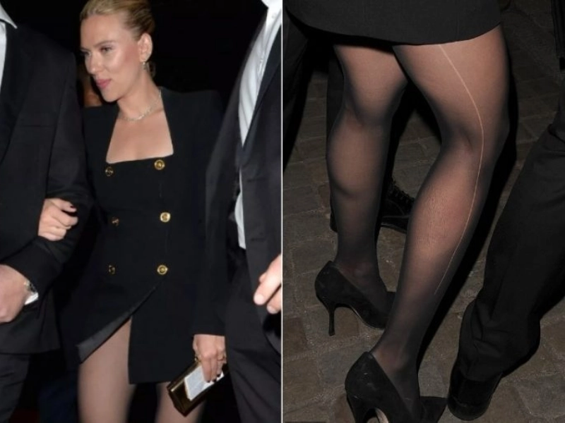 The dress is quite short, and the stockings are torn as well.